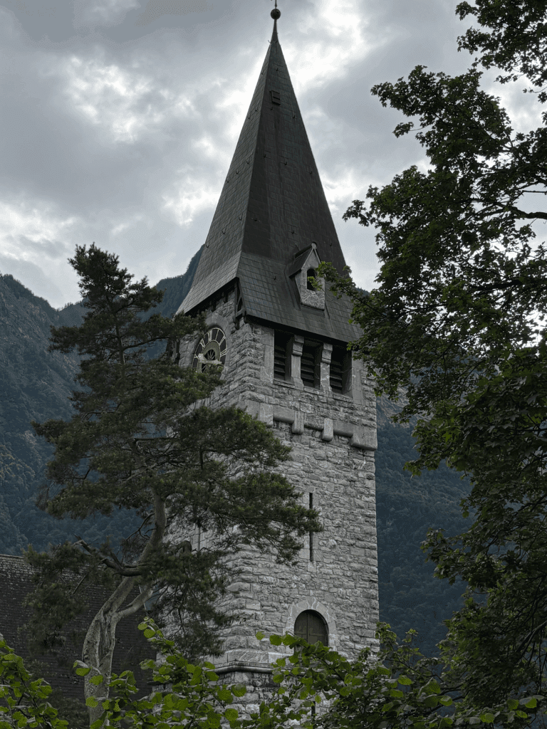I bought a small salad in the Spar grocery shop and enjoyed it sitting on my balcony that evening. Triesen is very picturesque and is surrounded by mountains. There was a bad storm that evening and the mountains were lit up regularly by the spectacular lighting.